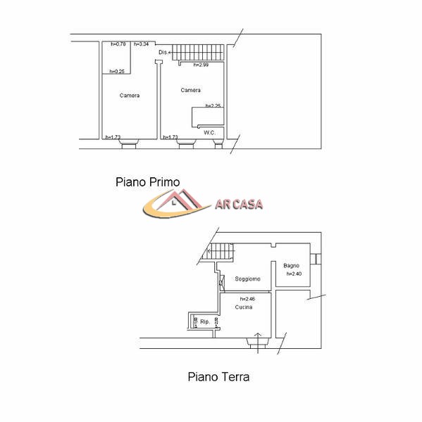 – **Piano Primo:** Comprende due camere matrimoniali; la prima camera è provvista di un bagno privato.
